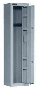 High security cabinet for the safekeeping of shotguns and riflesExceeds the UK standard for storing firearms4mm solid steel body and doorMulti point locking with VdS class safe lock and 2 keysWeapons holder included for up to 7 weapons4 handy storage compartments built into the rear of the doorBase and rear fixing holes provided