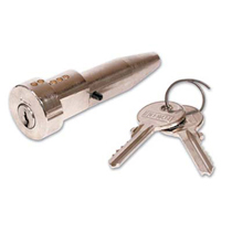 25mm round headed bullet lock. A split pin located behind the cylinder barrel is rotated by a turn of the key, allowing the bullet to be inserted or withdrawn from the housing.