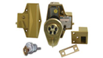 Mechanical digital combination rim mounted locks, available in the form of an automatic deadlocking nightlatch with holdback facility.