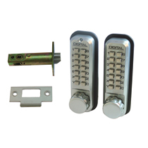 Operation : Mechanical retraction of latch upon entry of correct code. No. Of Codes : One - always prefixed by 'C'. Combinations : Several thousand. Code Length : 4 to 6. Holdback : N/A. Latch : Low duty 12mm mortice deadlatch. Finishes : Satin chrome OPERATION Mechanical retraction of latch upon entry of code. Non-sequential code. FEATURES Non handed units. Protective clutch mechanism. Suitable for rebated doors. Suits 35-55mm thick doors. Lock is weather resistant. Dimensions A = 80, B = 60, C = 142, D = 40