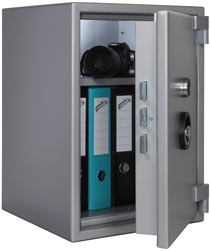 £10,000 overnight cash cover (£100,000 valuables)Independently tested and certified by VdS test houseCertified according to EN 1143-1 Security Grade l3-way square locking boltwork, with continuous hinge side protectionDoor opens to 205 degrees for maximum accessLightweight construction - Ideal for upper floor installationFitted with VdS class 1 double bitted safe lock and 2 keysInternal door pan is locked to prevent tamperingSupplied with adjustable (50mm intervals) / removable shelfTwin fixing positions - Bolts supplied