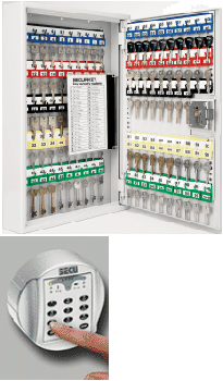 KEY VAULT - Silver Rating - 48 keys Key Vault - providing protection well above the standard Key Filing range. Designed to meet the requirements of insurance companies in preventing loss of keys associated with risk to valuables or property. 2.5mm body and 3mm door (max.). Weight 7 kg This model comes complete with the Rebo A combination lock. Powered by 9 volt alkaline battery. Safe is opened by entry of six digit combination. The safe has emergency battery terminals on the outside of the case for use if the battery is exhausted. Dimensions : Height 355mm, Width 300mm, Depth 80mm