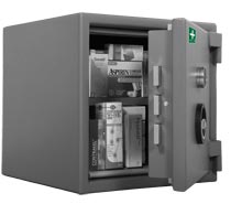 Maximum security for the safekeeping of controlled drugs / medicines 3-way square locking boltwork, with continuous hinge side protection Door opens to 205 degrees for maximum access Lightweight construction - Ideal for upper floor installation Fitted with VdS class 1 double bitted safe lock & 2 keys Optional combination or electronic locking available Internal door pan is locked to prevent tampering Supplied with adjustable (50mm intervals) / removable shelf Twin fixing positions - Bolts supplied MedSafe: Weight: 75kg External dimensions (mm) H x W x D : 410x 415x 345 Internal dimensions (mm) H x W x D : 334x 355x 225