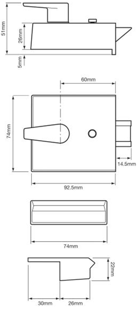For wood doors 35mm to 60mm thick hinged on the left or right opening inward. Suitable for both exterior and interior doors, including glass panelled doors. Not recommended for single door entry dwellings. The bolt is withdrawn by key outside and handle inside. The bolt may be held in the locked or in the withdrawn position by operating the thumb button. When the door is closed the bolt is automatically locked against end pressure by the anti-thrust slide. Turning key a full revolution anti-clockwise deadlocks handle
