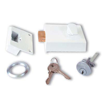 Mechanism : Deadbolt only - Cylinder Not suppliedCase Finish : White EnamelKeys Supplied : 2Door Thickness : 35mm - 60mmDeadbolt is locked or unlocked by handle from inside and key outside. Cylinder is not supplied but will work with any UK RIM Cylinder.