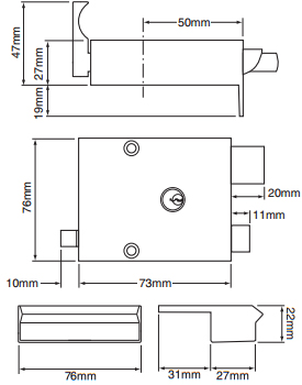 Latchbolt is withdrawn by pull handle inside or key outside. Deadbolt is locked or unlocked by key from either side. One full turn of the key clockwise operates first throw and a second full turn double throws the bolt. Latchbolt can be held back by anti-clockwise turn of the handle whilst bolt is withdrawn. Particularly suitable for glass panel doors. Double throw deadbolt. Mechanism : 5 Pin Cylinder Case Finish : White Enamel with Satin Chrome cylinder or Electro Brass with Brass cylinder Keys Supplied : 3 Door Thickness : 35mm - 60mm
