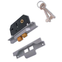 Application: Wooden doors hinged on the left or right and requiring key and lever handle operation. Available in 65mm or 78mm case sizes. 13mm rebate. Operation:Two way action suitable for lightweight knobs or sprung handles. Deadbolt locked or unlocked by key from either side. Latchbolt withdrawn by lever handle from either side Keys suitable for doors up to 55mm thick when using 8mm thick furniture plates. Finish: Finish shown in Silver Enamel. Case Material and Finish: Steel, Black. Forend: Zinc, finished to match striking plate. Striking Plate: Zinc, finished to match forend. Latchbolt/Deadbolt: Deadbolt - Aluminium, finished AG. Latchbolt - Aluminium, finished AG. Follower: Zinc, 8mm square. Supplied with 2 keys.