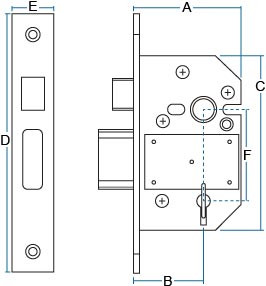 Application: Wooden doors hinged on the left or right and requiring key and lever handle operation. Operation: Latchbolt withdrawn by lever handle from either side. Easily reversible latchbolt for use on either left or right hung doors. One simple screw operation. (Supplied left handed). Extended 20mm deadbolt for secure positive deadlocking and additional resistance against jemmy attack. It is recommended that this lock is not fitted to doors less than 44mm thick. When specified as a non Kitemarked lock case the lock cylinder can be master keyed with other similar cylinder locks. Standards: Made in the UK. Kitemarked to BS3621:1998 when supplied as a complete lockset. Finish:Finish shown in Satin Chrome J-L2244E-SC-78Also available in Polished Brass J-L2244E-PB-78 Case Size, Material and Finish: 78mm (3"), Steel, Red Enamelled. Forend: Stainless Steel, finished to match box strike plate. Striking Plate: Steel, finished to match forend. Latchbolt: Brass. Deadbolt: Brass, with hardened steel rollers. Follower: Brass, 8mm square. Keying Groups: A, B, C, Masterkeyable, 3 steel keys. Cylinder Type: Euro Profile. Other Security Features: Can be used with a patented cylinder system. Other Product Benefits:2968 rebate sets available to suit.