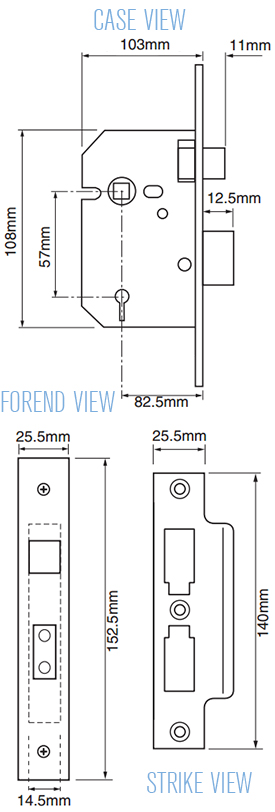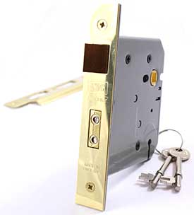 3 Lever Internal sashlock: Application: Wooden doors hinged on the left or right and requiring key and lever handle operation. Operation: Deadbolt locked or unlocked by key from either side. Latchbolt withdrawn by lever handle from either side. Pierced to accept bolt through furniture. Finish: Finish shown in Polished Brass . Also available in Satin Chrome. Case Material and Finish: Steel, Silver Enamelled. Forend: Stainless Steel, finished to match strike plate. Striking Plate: Stainless Steel, finished to match forend. Latchbolt/Deadbolt: Deadbolt - Brass, hardened steel rollers. Latchbolt - Brass. Follower: Brass, 8mm square. Spare cut keys reference MM (numbers range 101-200).