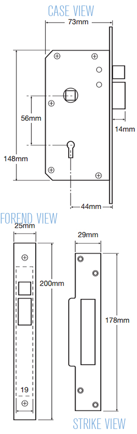 Union C Series Range of Non BS3621 mortice locks which can be keyed alike together.