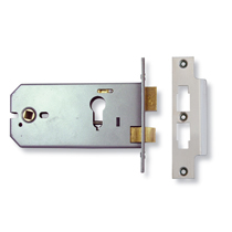 Deadbolt is locked or unlocked by Euro profile single cylinder, double cylinder or cylinder & turn. Reversible latchbolt withdrawn by knob from either side. Pierced to accept bolt through furniture. Mechanism : Euro Cylinder(Not Supplied) Case Size : 152mm Follower : 8mm (Two Way Action) Case Finish : Enamelled Silver Forend Finish : Brass or Satin Chrome Handing : Reversible