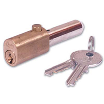 ASEC Bullet Lock, Identical to Viro Bullet Lock Cylinder Finish : Brass. Cylinder Diameter : 22mm x 14mm (Oval). Overall Length : 76mm Housing Diameter : 41mm. Housing Projection : 35mm. Keys Supplied : 2. OPERATION : Sprung locking pin on top of cylinder barrel is depressed by a turn of the key, allowing the bullet to be inserted or withdrawn From the housing. FEATURES : Key removable in locked position only.