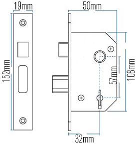 With a thinner faceplate at 19mm this lock was designed for use where a standard 25mm faceplate width would be to wide. It has 5 internal levers and is essentially no different to the standard Willenhall M3 model, just a bit thinner. Mechanism: 5 Lever Faceplate Width: 19mm Case Size: 50mm Case Finish: Blue Forend Finish: Brass or Satin Chrome Keys Supplied: 2 Handling: Reversible Differs: 100