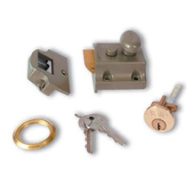 Latchbolt is withdrawn by knob from inside and key outside. Bolt can be deadlocked or held back by slide button from inside. See YALE 723 if you need to be able to deadlock by key. Latchbolt is easily reversible on site. Reverse strikes available to suit outward opening doors. Mechanism : 5 Pin Cylinder Cylinder Finish : Brass or Satin Chrome Case Finish : Enamelled Nickel Bronze Keys Supplied : 2 Door Thickness : 32mm - 57mm