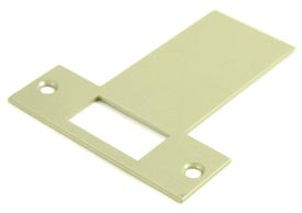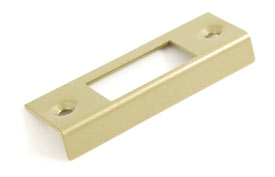 Long lipped strike plate for use with reverse bolt nightlatches and outward opening doors.