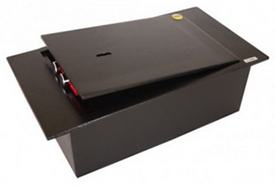 Compact and discrete, key operated safe for fitting between joists. Pre-drilled holes with fixing bolts included. Steel construction and lined with soft material to prevent damage to contents.Ext H130mm x W390mm x D210mm Int H80mm x W325mm x D170mm
