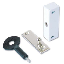 Automatically snaplocks when window is closed. Released by use of the key.Suitable for outward opening hinged windows. Supplied with wedge plate for tapered frames & fixing screws.Finish : WhiteSize : 63mm x 17mm x 18mmPacked Quantity : 1 Lock & 1 Key