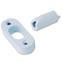 Must have on outward opening doors. Protects the doors from being removed if hinges are broken. Finish : White Supplied complete with fixing screws