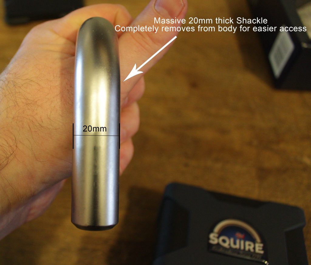 The Squire SS100 padlocks have a massive 20mm shackle that is the largest shackle around and because of this Squire have had to make 2 special products that will work with these padlocks. The Squire STH100 hasp and Staple and the TC22 Chain ( continue reading to see more about these products).