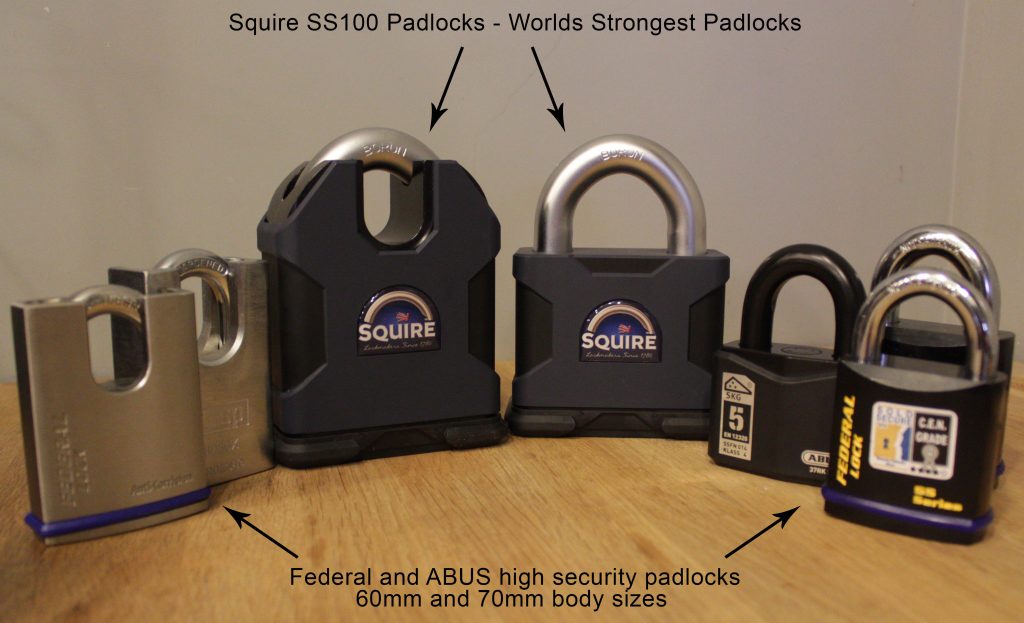 These locks from Squire are the best so really for the sake of £350-400 I would always say it's worth spending more at the start and get the best than wait to be have something stolen and regret it after the fact.