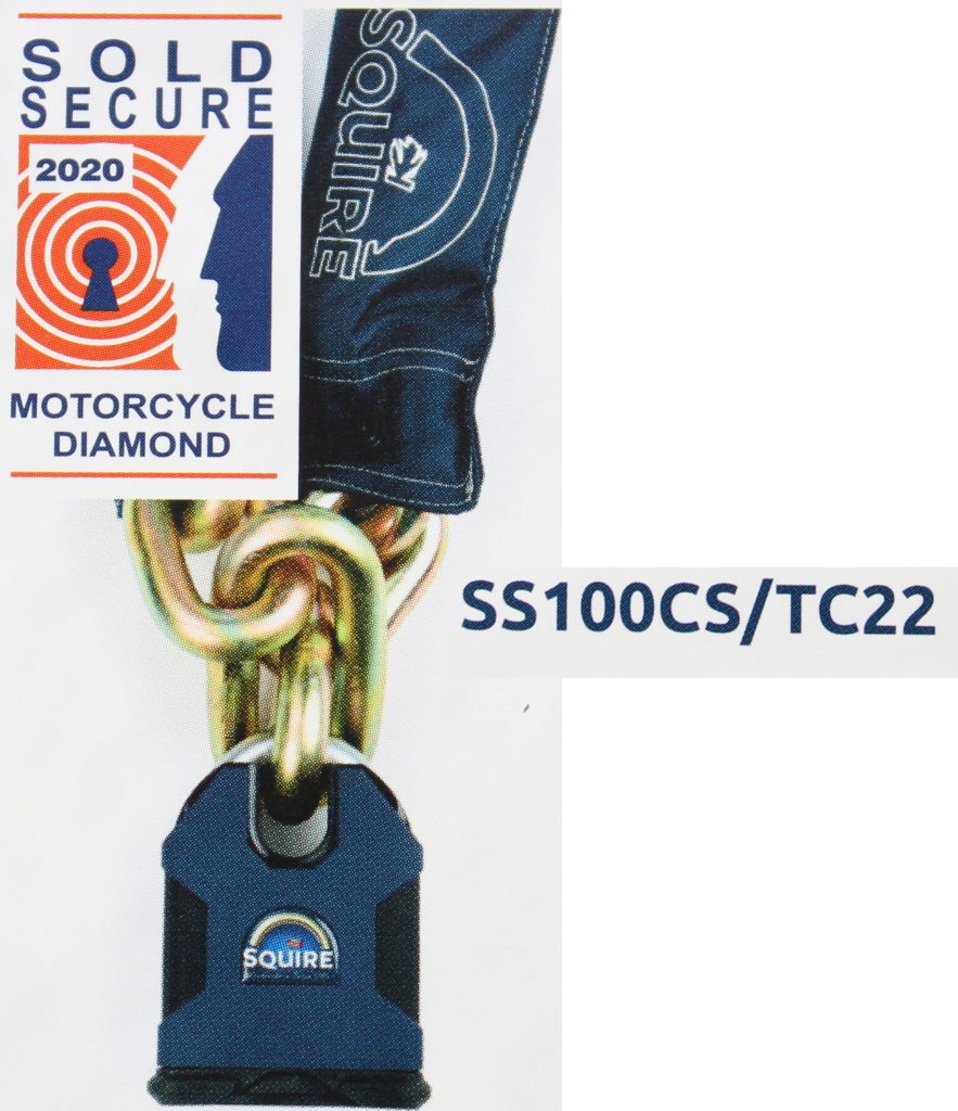 The Squire TC22/5 and SS100CS Padlock and chain set achieves the highest Sold Secure rating of Diamond. This is the toughest chain and padlock combo on the market.