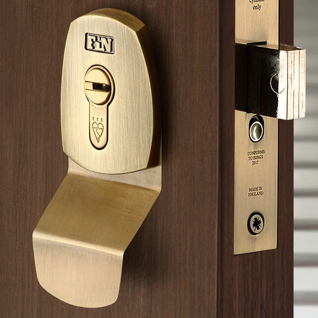 Install a new FinFort auto-locking mortice deadlock, the first of its kind. This lock is BS3621-rated and automatically secures the door upon closing, just like a traditional nightlatch.
